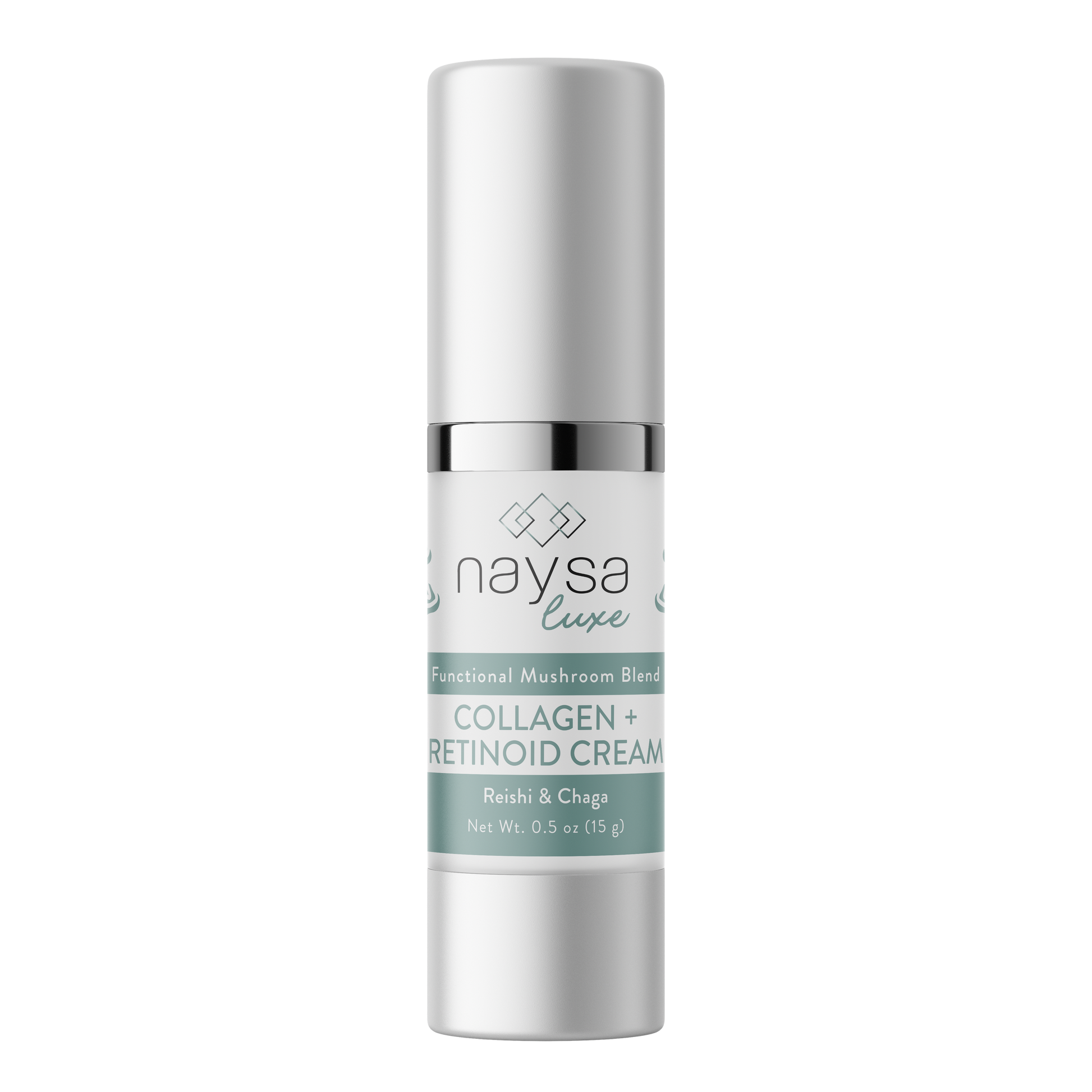 Collagen + Retinoid Cream is a fusion of advanced skincare and natural botanicals for radiant, youthful skin. This transformative cream features a potent blend of Collagen and Retinoid, expertly formulated to combat fine lines, promote elasticity and rejuvenate your skin's texture. Harnessing the power of nature, our cream is enriched with Reishi and Chaga mushroom extracts.