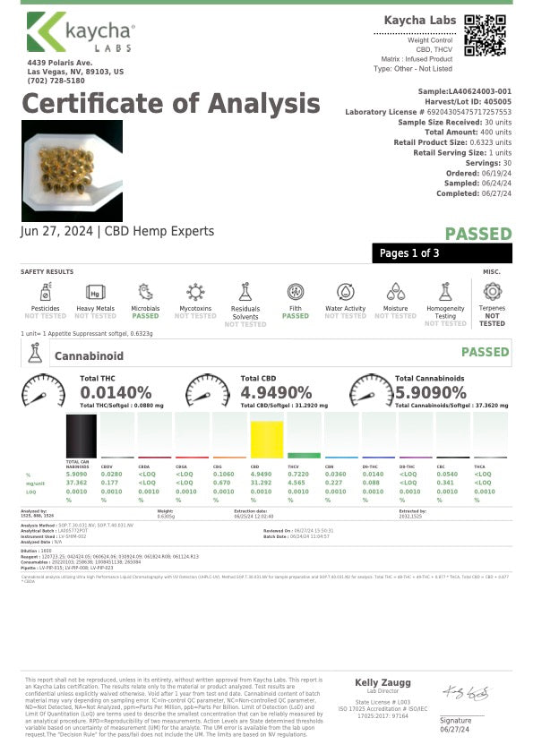 NAYSA Weight Control Softgels with 25mg CBD & 3mg THCv