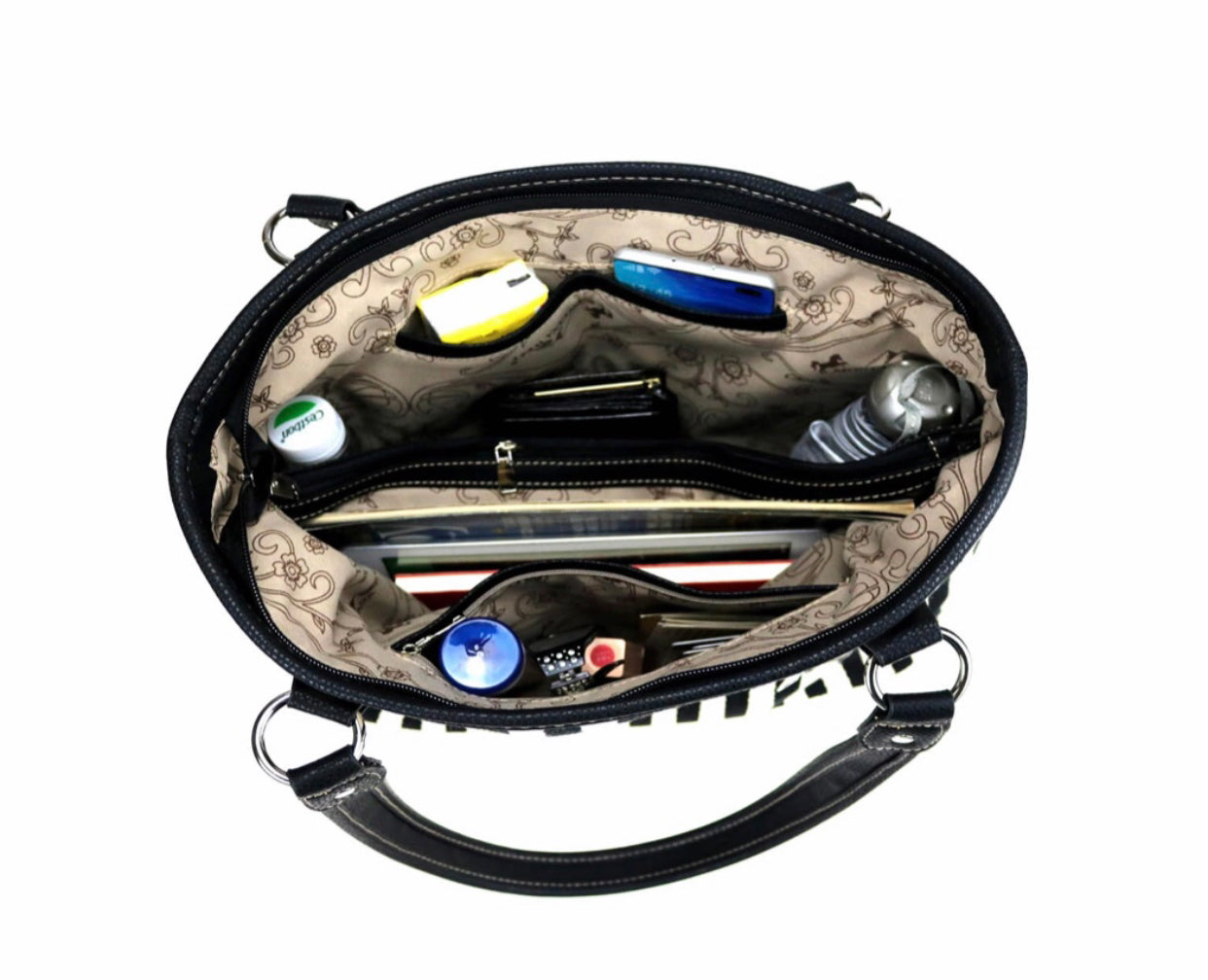 Made of the PU leather trimmed and canvas , this tote bag has: